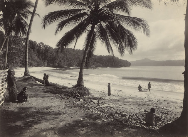 Wij gaan weer weg. In het voorkamertje geeft een oververmoeide jonge moeder met moeite melk aan haar baby. Even een hand op haar schouder. Moeder je doet het goed hoor. Een vermoeide maar toch blije glimlach. Naar huis door de warme duisternis. Lopend over de zandpaden. Langs de ruisende kokosbomen, de vredige acacia’s, flamboyant bomen en de knisperend slapende bougainvillea. Het strand en de zee op gehoorafstand. Denk ook aan fotograaf Ohannes Kurkdjian die rond 1912 prachtige foto’s maakte in Nederlands-Indië.