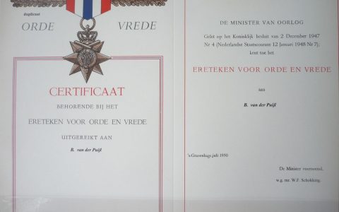 Twee jaar later, in september 1948, werd hij in Batavia gedemobiliseerd en in oktober dat jaar eervol ontheven uit zijn functie en uit het OVW-erschap. In 1950 ontving hij de medaille voor Orde en Vrede, en in oktober 1951 ging hij met “groot verlof”. Maar in 1950 had hij al een transportbedrijfje en had hij, met Jan Thomas Scheers, familie van Jeanne, vanuit de Djalan Purnawarman 31, voorheen de Burg. Kuhrweg, een handeltje in fietsen. Waarom raakte hij gewond, zo ernstig dat hij mij niet zelf kon aangeven? Waarom wist mijn moeder niet waar hij was? In welk hospitaal “bij de politie” heeft hij gelegen? En hoe lang? Waarom mocht hij – 2x ! – per vliegtuig naar Holland?