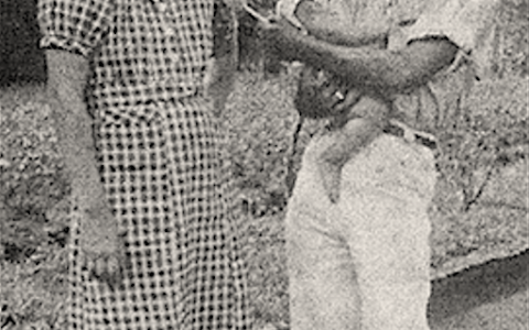 Paniek, doodsangst, gegil en dan: ze wordt gespiest mijn zusje. Wij ontkomen, naar dat kamp. Moeder wordt gek, en opgenomen ergens in een gesticht. Wij blijven in dat kamp tot vader ons ophaalt, en we gaan naar Holland. Moeder hebben we nooit meer gezien; toen ik 11 was kreeg ik eens een briefje van haar waarin ze om geld vroeg, zo arm was ze kennelijk.