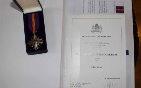 Op 25 november wordt postuum het Mobilisatie Oorlogskruis voor Frits Hertel aan de familie uitgereikt.