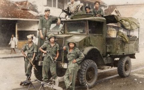 Niet lang daarna reden verschillende vrachtwagens met pemuda’s door de straten, gewapend met Bamboe Roentjings… en schreeuwend “”Merdeka,Merdeka””…